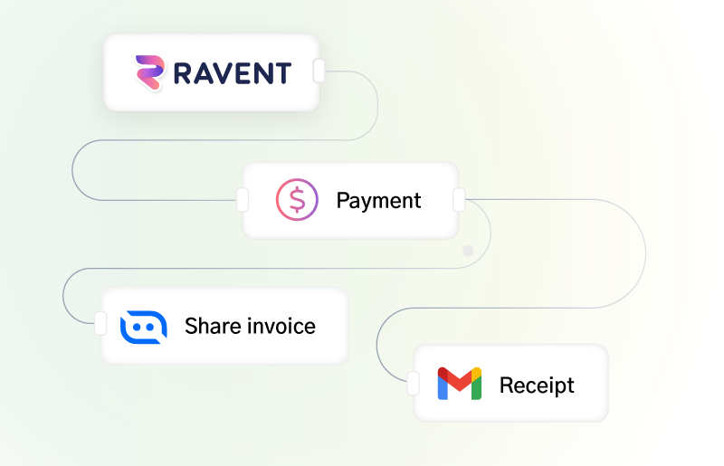 Payment links or terminals capture funds; invoices are issued and reconciliation is automatic