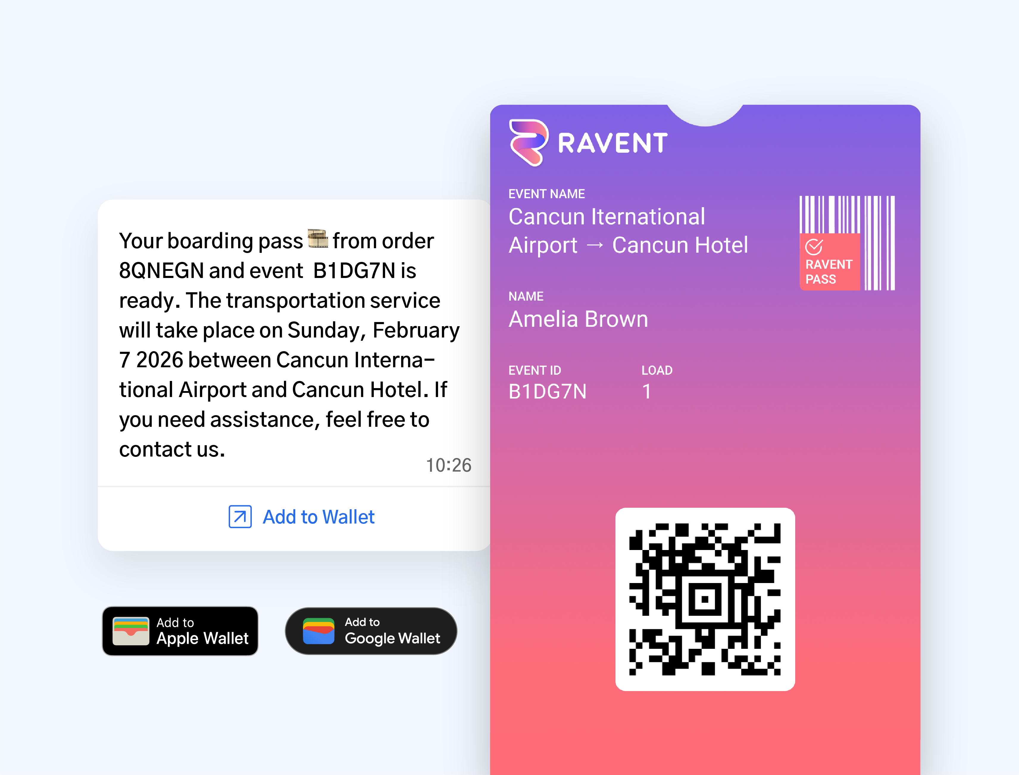 RAVENT's Pass engine generates native digital passes compatible with Apple Wallet and Google Wallet, providing a seamless, paperless experience for your customers while enabling real-time issuance and advanced scanning.